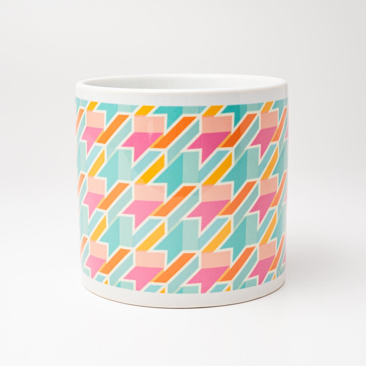 千鳥格子のマグカップです。サイズ感、重量感ともに手ごろで、手のひらに心地よく馴染みます。明るい色の千鳥格子をマグカップにしました。内容量は150mlで、ちょっと一息のコーヒーや紅茶、ハーブティーなどにピッタリです。